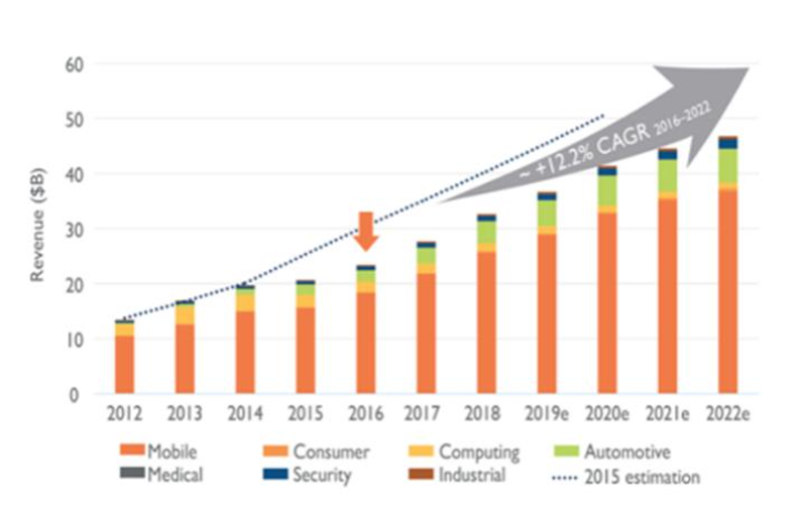 需求增长+技术升级推动手机摄像头各组件及整体市场规模扩张。根据 Yole 数据,2018-2024 年, CIS 市场规模将从 123 亿美元增长到 208 亿美元, CAGR 为 9.2%;镜头市场规模将从 41 亿美元增长到 60 亿美元, CAGR 为 6.7%;音圈马达市场规模将从 23 亿美元增长到 44 亿美元, CAGR 为 11.5%;模组封装市场规模将从 85 亿美元增长到 139亿美元, CAGR 为 8.9%;全球手机摄像头市场规模将从 271 亿美元增长到 457 亿美元,CAGR 为 9.1%。受益于下游需求增长及技术升级,从摄像头各组件到整体都有望迎来高速增长期,行业景气度持续提升。