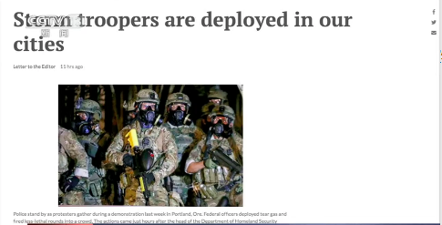 《纽约时报》甚至将这种联邦执法与“法西斯主义”挂钩。该报评论称,国土安全部代理部长和美国海关和边境保护局代理局长尚未获得国会参议院的任命,如今特朗普授权这些人占领美国的城市,其身份如同特朗普的私人雇佣军。