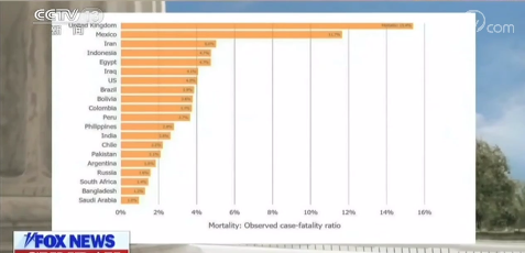 事后,福克斯新闻网贴出了美国约翰斯·霍普金斯大学公布的相关数据,由高到低排序,美国的新冠肺炎病亡率位列全球第7。