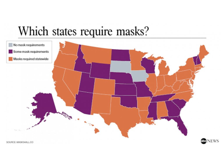 据美国广播公司报道,截至7月24日,美国已有30个州强制要求民众在公共场所佩戴口罩,但当前疫情形势最为严峻、每天新增病例超过一万的佛罗里达州却不在这一行列。