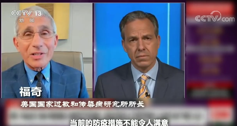 美国国家过敏和传染病研究所所长 福奇:当前的防疫措施不能令人满意,(全美)缺乏统一的标准,我们需要的是各州各县市的防疫水平保持一致。