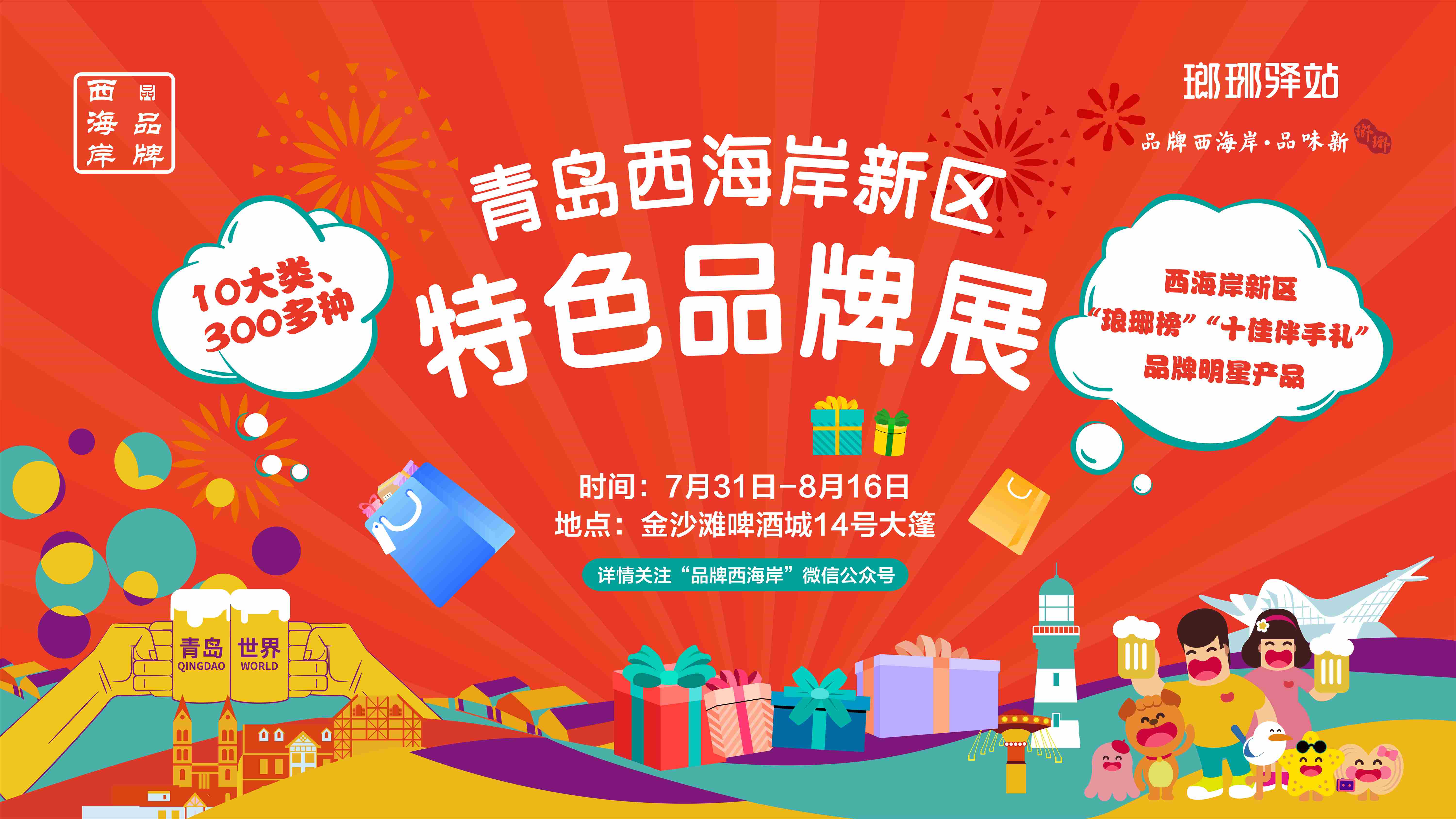 该展由青岛西海岸新区品牌发展中心、青岛西海岸新区文化和旅游局、青岛西海岸新区商务局共同主办,青岛黄岛发展(集团)有限公司、青岛中农现代农业发展有限公司承办。展区分为新区特色品牌展区和游客互动体验区,将“瑯琊驿站”搬进了金沙滩啤酒城。