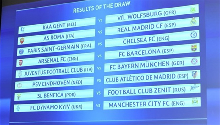 北京时间12月14日晚19时(瑞士当地时间12月14日中午12时),2015-16赛季欧洲冠军联赛1/8决赛抽签仪式在瑞士尼翁的欧足联总部举行。其中,皇家马德里将对决罗马,巴黎圣日耳曼再遇切尔西,“十六郎”阿森纳再次面对“宇宙队”巴塞罗那,拜仁慕尼黑则遭遇上届亚军尤文图斯。