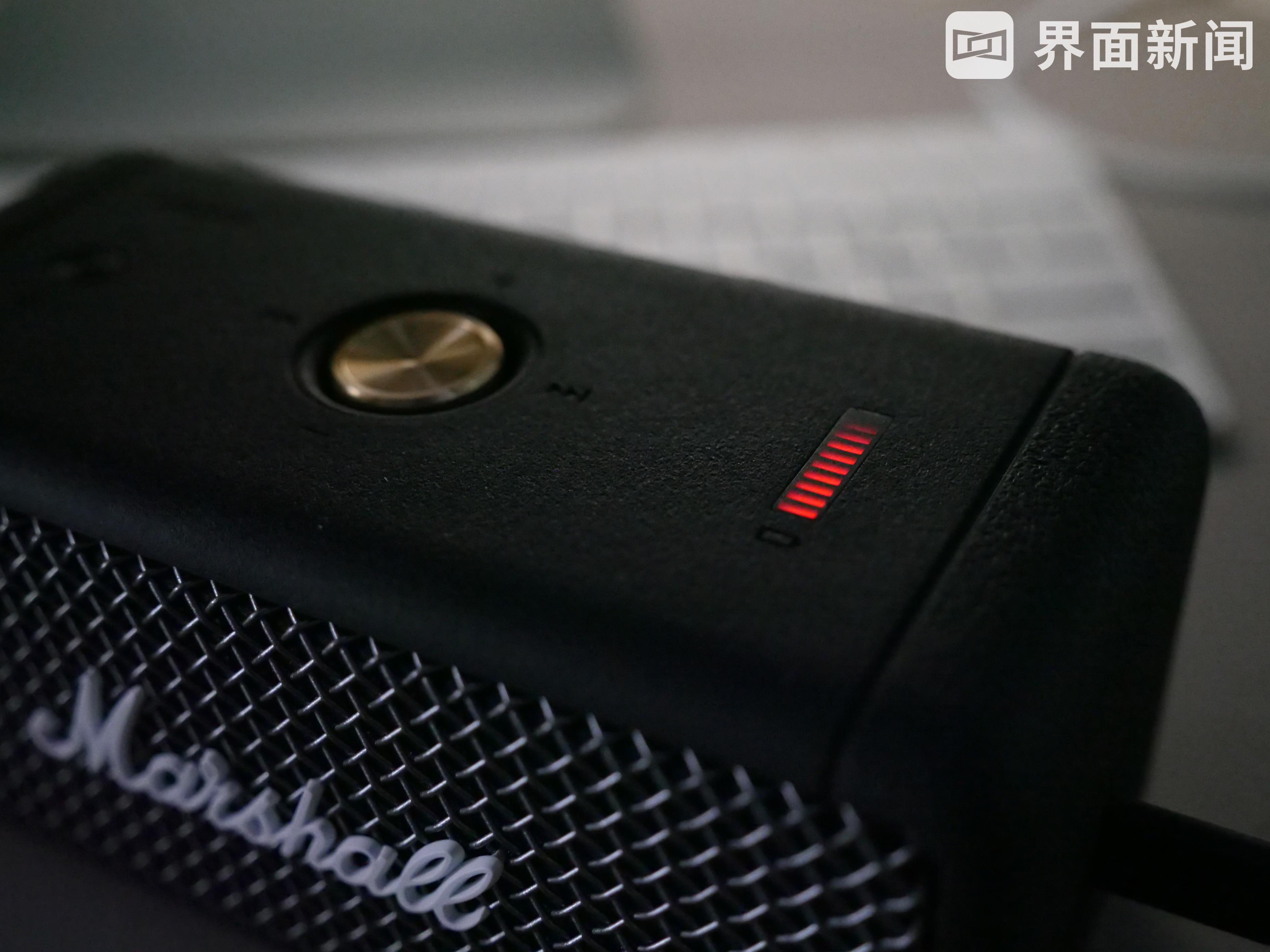 Emberton延续了Marshall的经典设计:正面是金属网罩,中间是Marshall标志性的手写体logo,整体造型依旧充满了复古气质。
