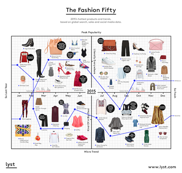 按照一月到十二月的顺序排列,以下便是Lyst版本的2015单品集合,快来检查看有没有你眼里的2015心头好。