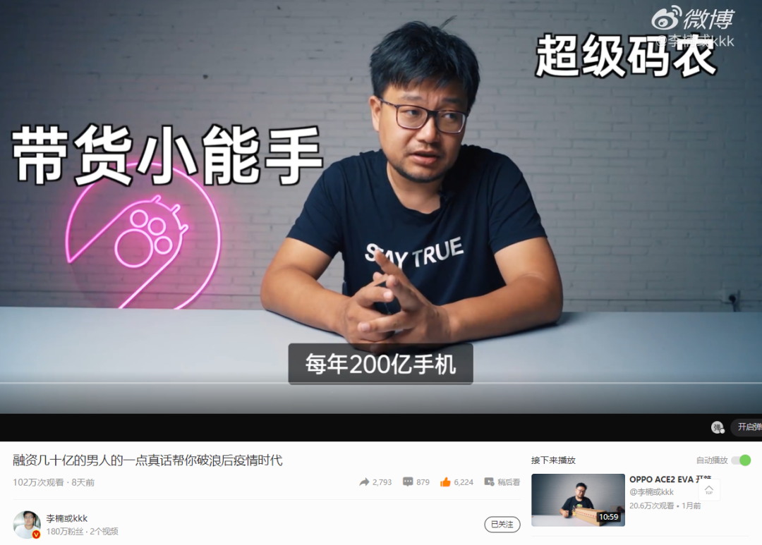 看着视频里这个曾每年卖出200亿手机的男人,开箱点评前友商产品,很自然让人联想起直播间里为小米带货的罗永浩。同为手机企业前CEO,卸任之后,二人不谋而合地走上了网红这条路。