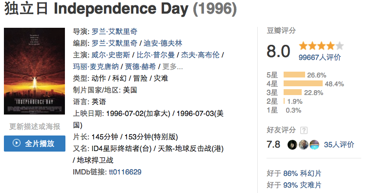 相距1996年7月3日北美公映的《独立日》近20年后,《独立日2:卷土重来》将在明年6月24日公映。中国有望引进。