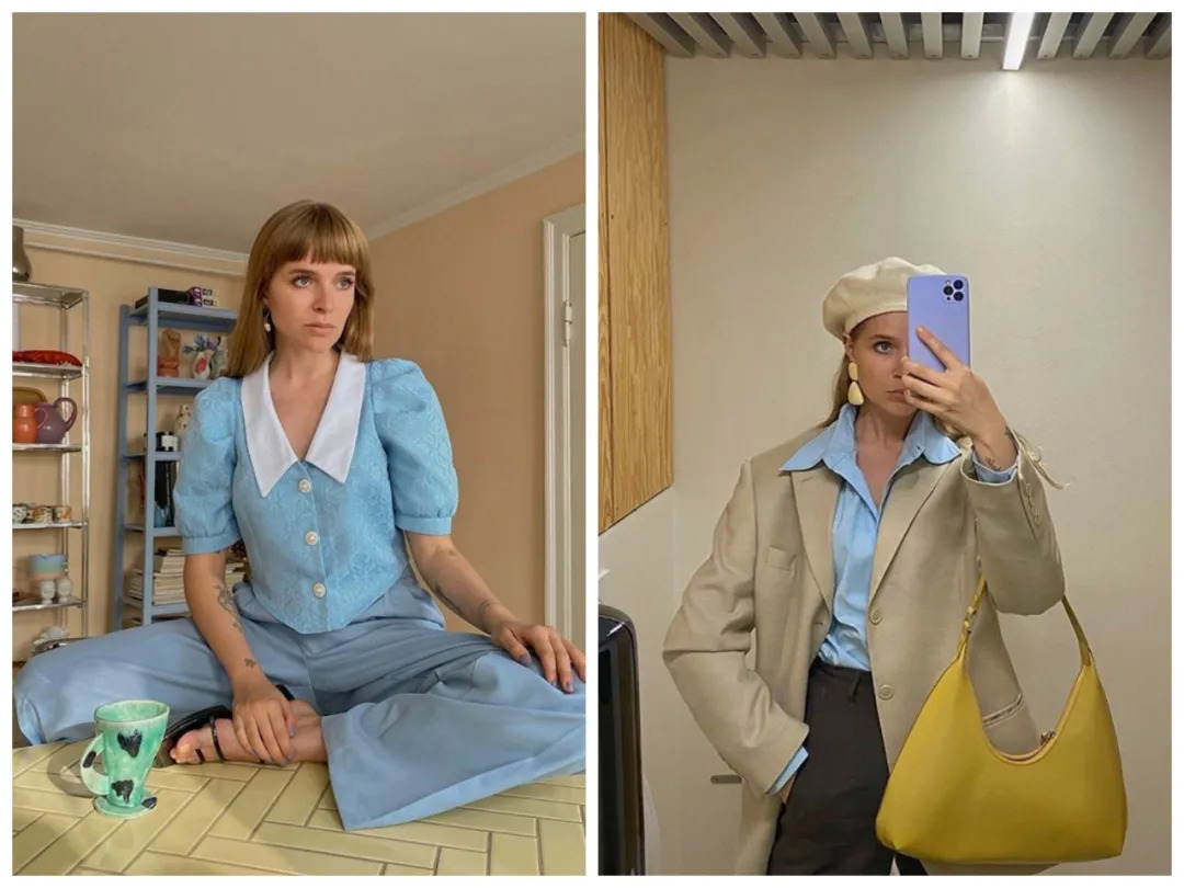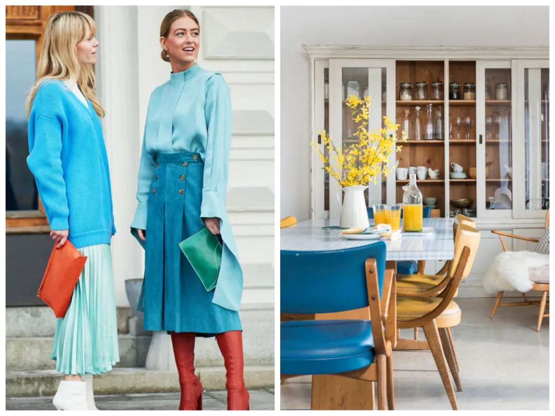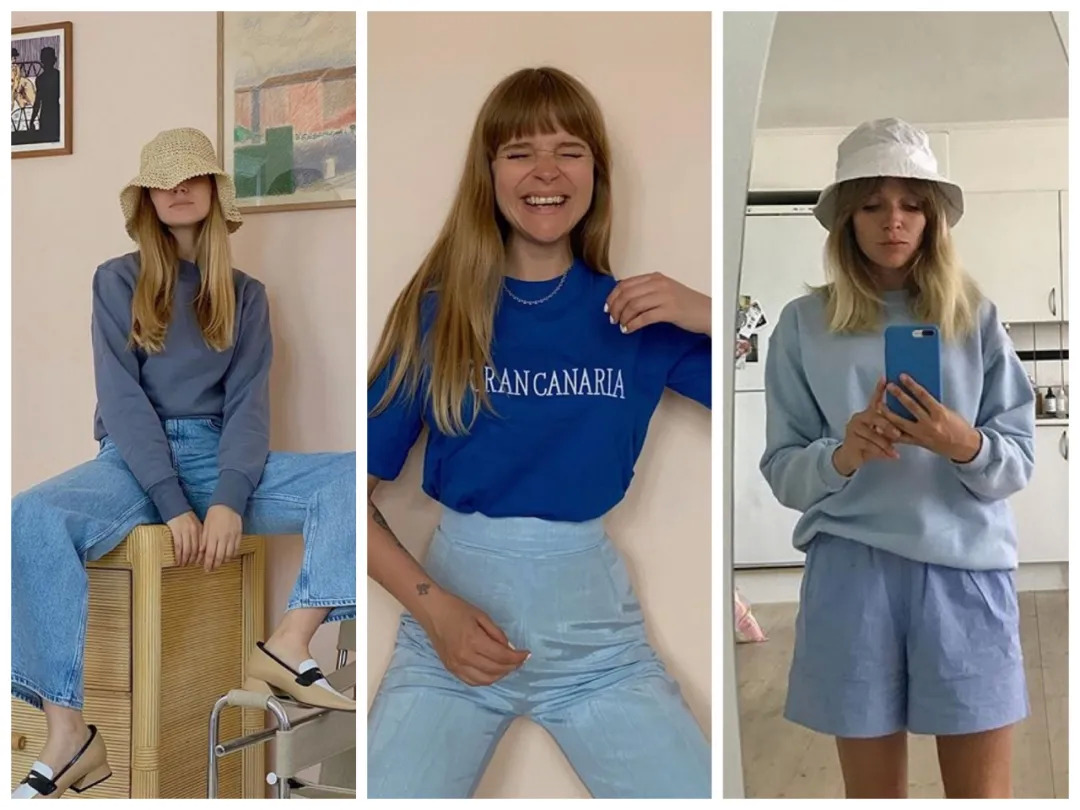 蓝+黄油色。这组万能CP,把颜色的饱和度调低之后,变得更加高级耐看了~