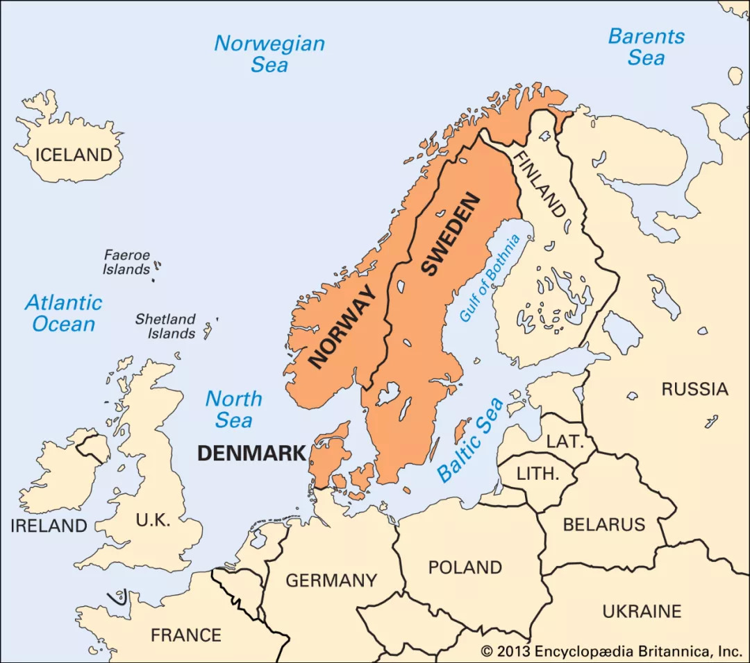 所谓Scandi,指的是Scandinavian斯堪的纳维亚半岛。地理上包括挪威和瑞典,历史文化上多一个丹麦。