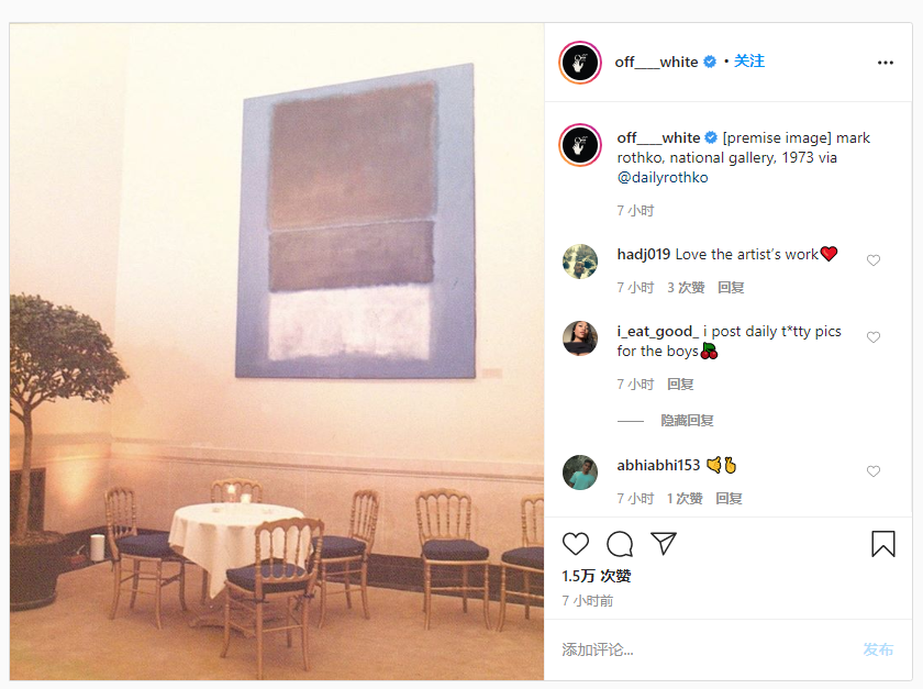 之前就说过,今年的时装界很多灵感都来自艺术圈。连Off-white都在发各种各样的艺术品。