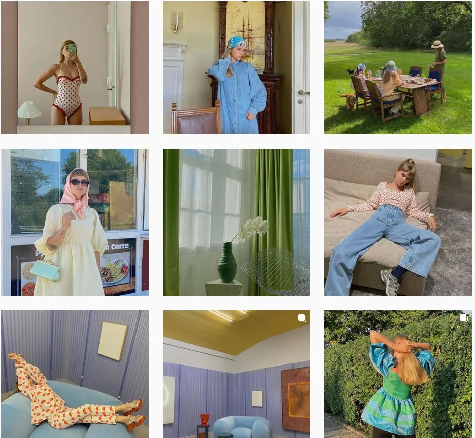 虽然她的IG花花绿绿,但却看起来非常舒服,有一种油画质感。她也是《VOGUE》官宣的新“Scandi Style”代言人~
