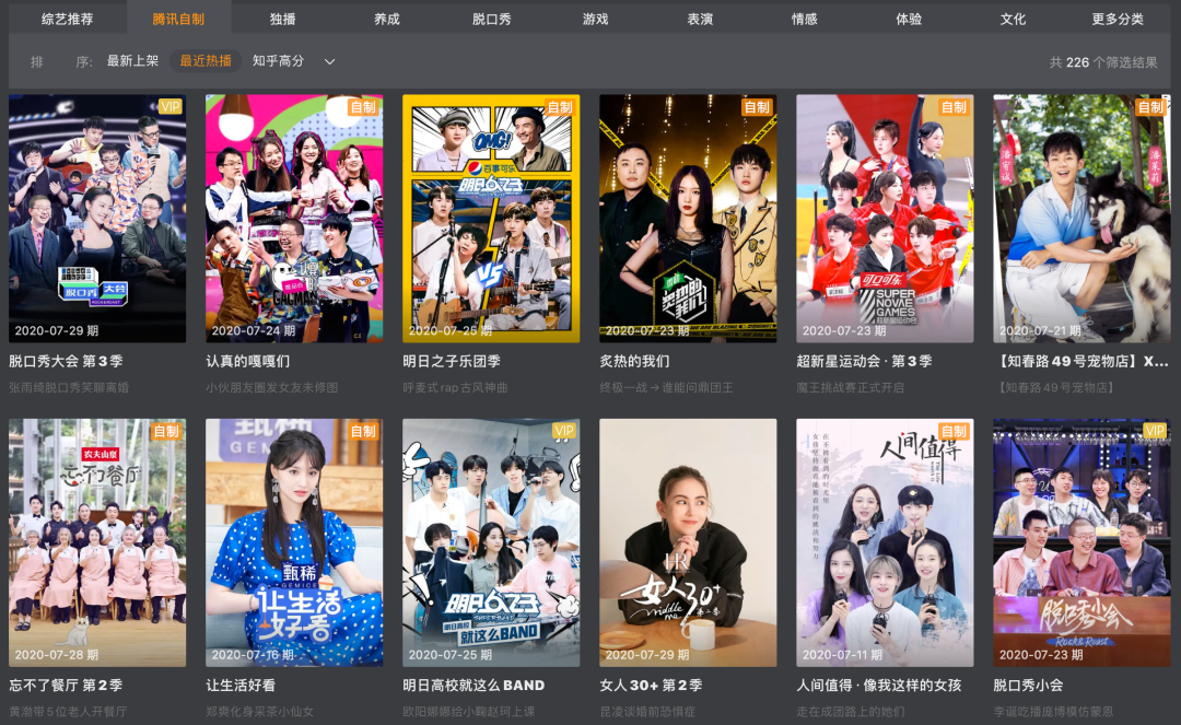 ▲腾讯视频近期上线的自制综艺