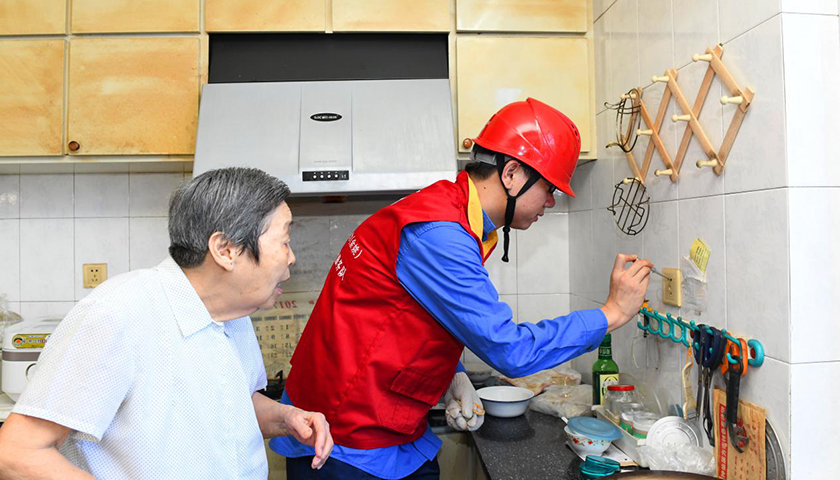 随后,红船党员服务队员们对周老家里的安全用电隐患进行了排查,加固松动的开关、插座,确保老人们用电安全,并叮嘱他们在日常生活中安全用电要注意的事项。“这个插座有点老化了,我们帮您换一个。”说着,杨敏杰就和队员们就打开工具箱,帮老人们换好新的插座,而这也是他们今年第3次来看望周凤山老人。