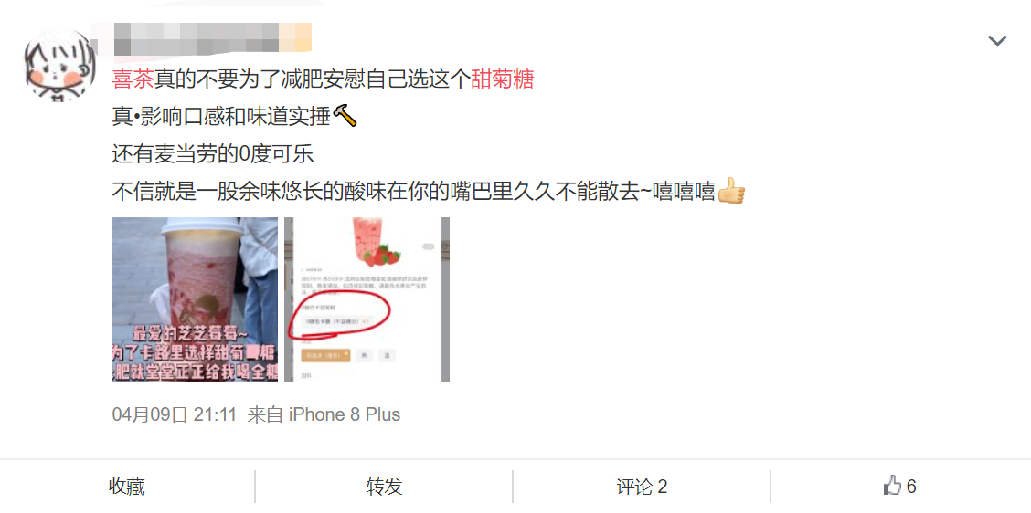 口感是一个难题。甜菊糖在食品界被广泛采用的阻碍在于,它的后味微苦。如果在微博里搜索“甜菊糖+喜茶”关键词,消费者的吐槽不少。大多数代糖和白糖还有一些微妙的不同,比如你感受到甜味的时间(口感线性)。喝口使用了白糖汽水,你能在4秒内达到甜味峰值。但代糖的反馈时间更长,几乎要10秒之后。