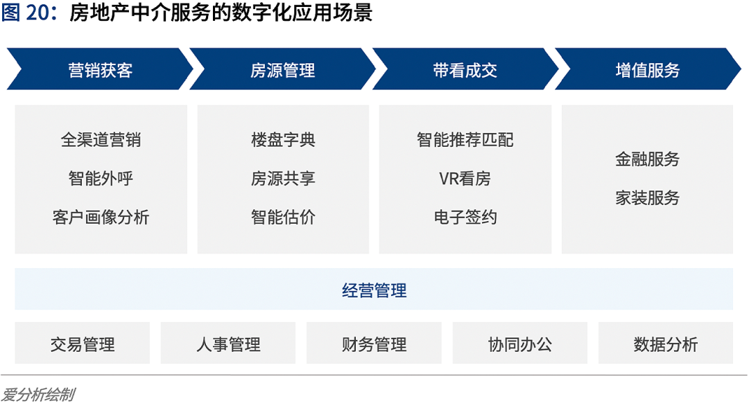 房地产本身除了提供空间的使用价值以外,也承载了物业服务、家居家装等丰富的产品和服务内容。物业服务企业、家居家装企业等服务提供方自身的经营挑战,以及用户需求的智能化升级,驱动着服务环节的数字化进程。