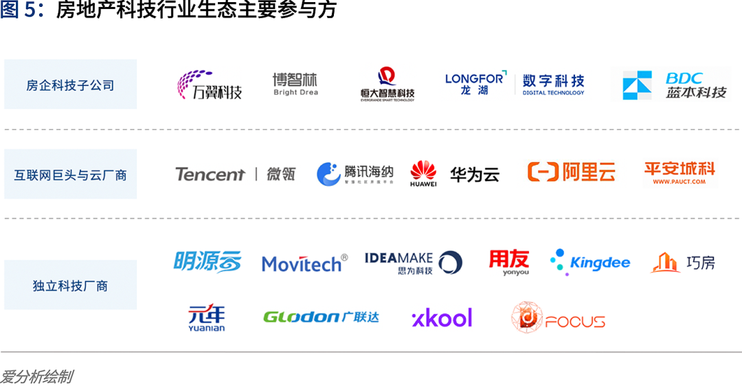 目前,房地产行业头部企业、互联网巨头、云厂商和独立科技厂商等创新势力,共同推动了房地产行业的科技渗透,初步形成了房地产科技行业生态。