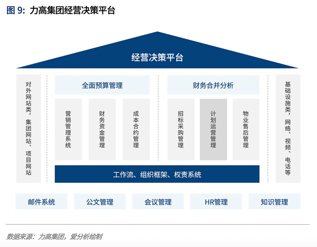 在信息化阶段,企业主要是进行业务系统等IT基础设施的建设,例如OA、计划运营系统、财务系统、售楼系统等业务系统,通过信息化实现经营流程的标准化和线上化管控,通过标准化的流程牵引提升业务经营效率。