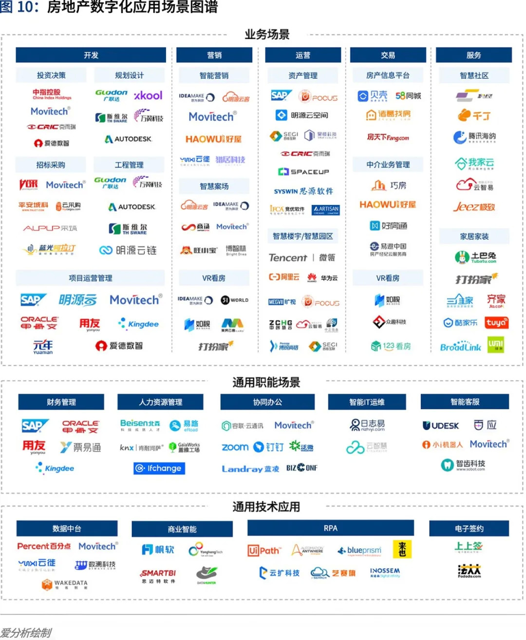 根据长期跟踪调研,爱分析梳理了房地产数字化应用场景图谱和代表性厂商。
