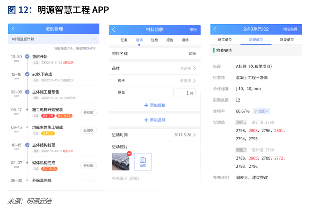 在项目管理行为的落地方面,以往由于缺少有效的监管工具,只能依赖抽查,实际效果不佳。在中海宏洋的工程项目中,管理人员通过APP记录管理行为执行情况,将管理要点以照片、数据的形式记录在系统中,以此建立管理行为的可追踪机制。