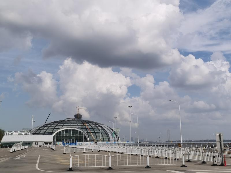 蓝天白云之下,吴淞口国际邮轮港正在安然有序地不断完善,静静等待着可以复航的那一天。