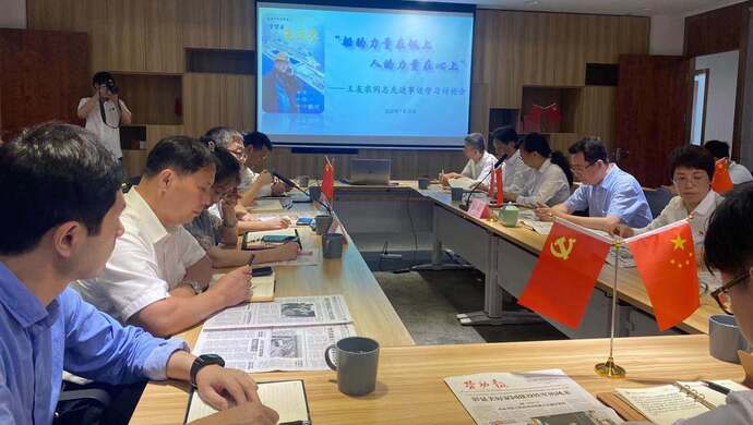 7月11日,王友农离开了他深深热爱并为之奋斗的邮轮事业。逝者长已矣,生者如斯夫。昨天,王友农生前工作单位——宝山区滨江开发建设管理委员会、上海吴淞口投资(集团)有限公司、上海吴淞口国际邮轮港发展有限公司组织开展了一次“船的力量在帆上,人的力量在心上”——王友农同志先进事迹学习讨论会。