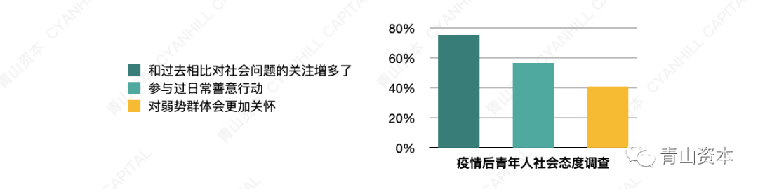 更多的消费品牌,尤其是针对年轻消费者的或新诞生的初创消费品牌,开始不只关注到个性、自我、叛逆等标签,而是更广泛和深入地将理解、互助、奉献等融入品牌价值的宣扬和品牌理念的展现素材中。符合和传播这类想法的产品和品牌也会更加受到消费者的青睐。