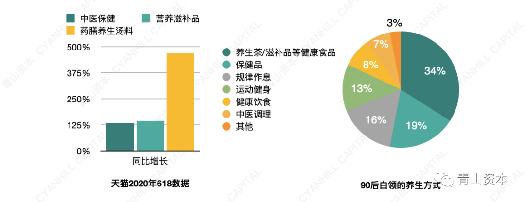 对国风文化的兴趣和普及,使得以传统中国文化元素如道法自然、阴阳五行为基底的概念,如养生、中药、食补、药食同源、上火、祛湿、养胃等,在消费者心智中成为了很酷和很时尚的事情。