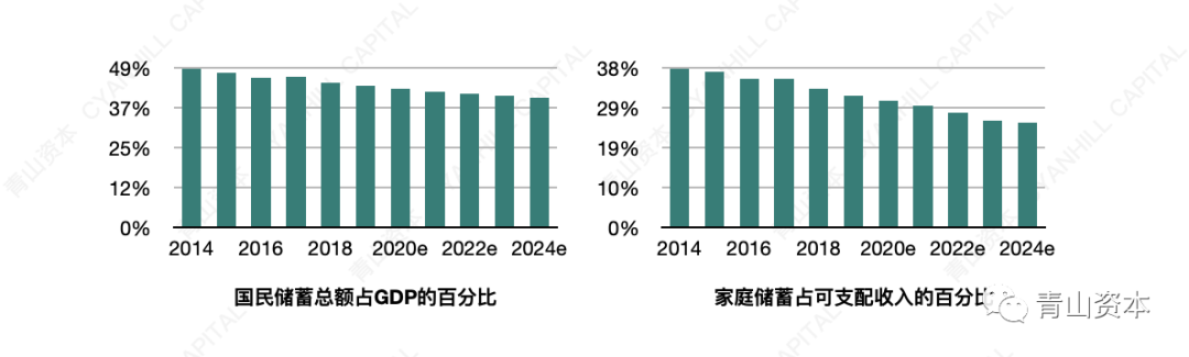 整体储蓄率不断下降。虽然中国的储蓄习惯和意愿属于世界前列,但根源的防风险思想已有更完善的社会保障体系来寄托,这一届年轻人实际上的消费能力和意愿都变得更强了。