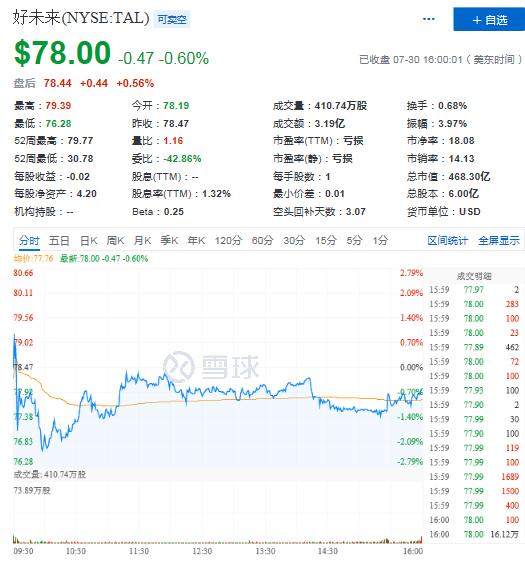从以上财报的核心数据来看,好未来在保持营收同比增长的同时也扭转了上个季度的亏损局面,算得上是一份还不错的财报。不过,表现在资本市场却并不友好,财报公布后,盘前股价便开始上演下跌戏码,一度跌超4%,开盘后股价直线下跌,截至当日美股收盘跌幅收窄至0.6%,报78美元。