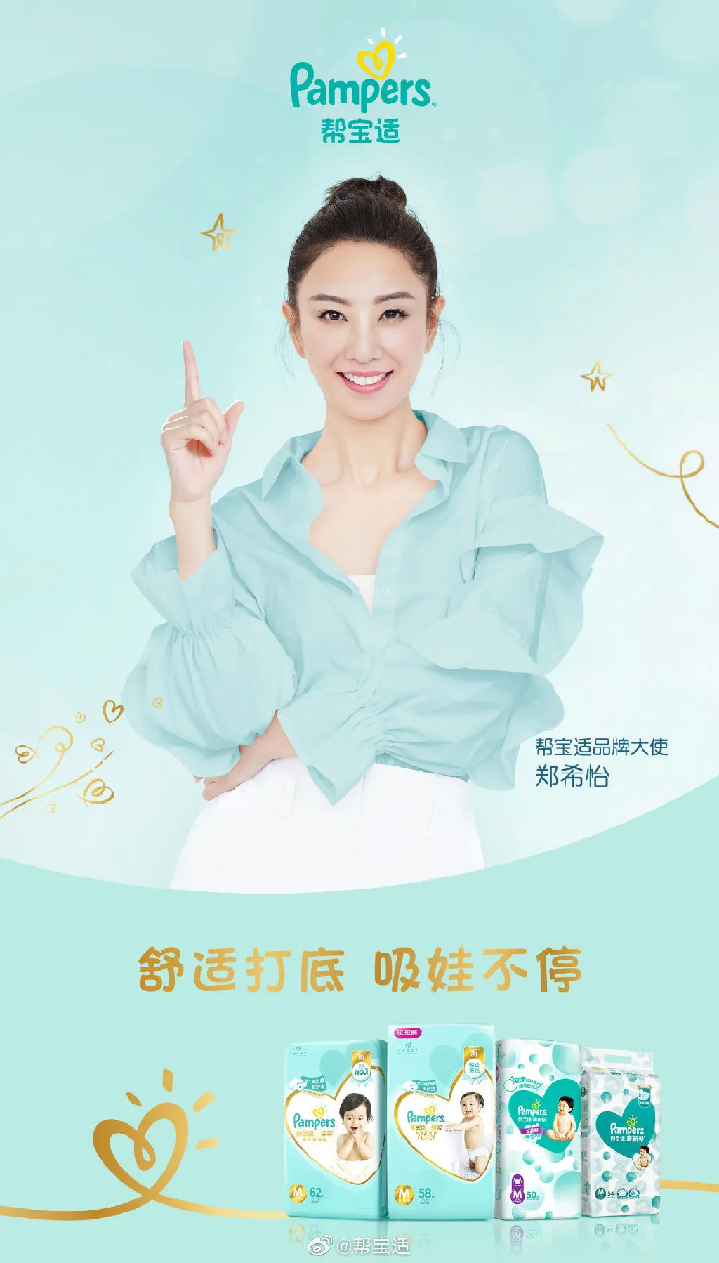 7月31日,帮宝适宣布郑希怡成为品牌大使。