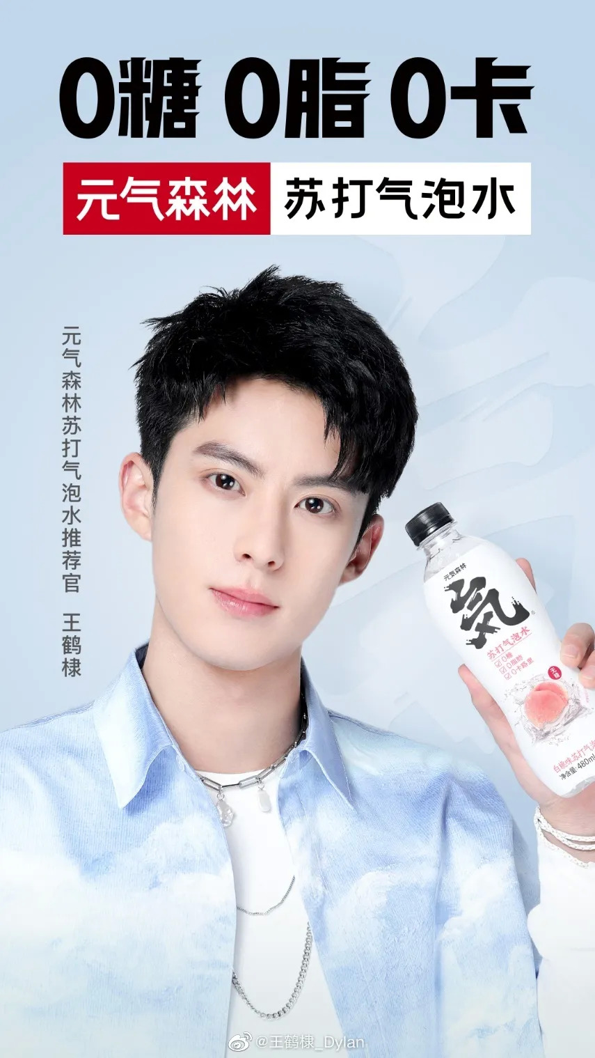 7月31日,元气森林宣布王鹤棣成为苏打气泡水推荐官。