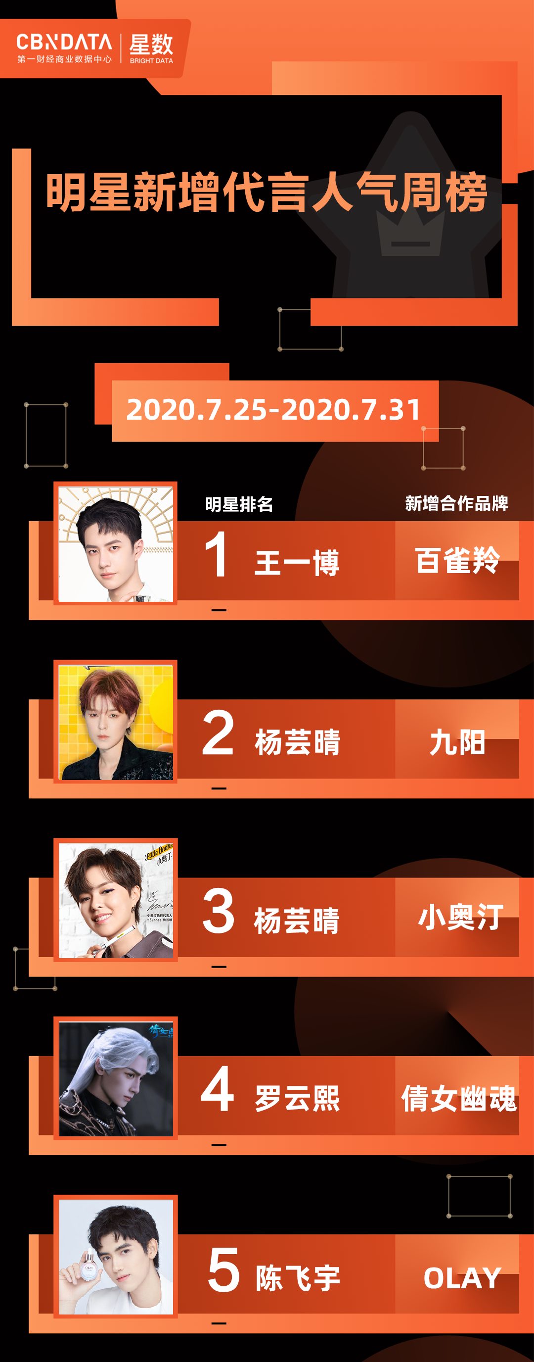 CBNData星数全新发布“明星新增代言人气周榜”及“明星代言周报”,
