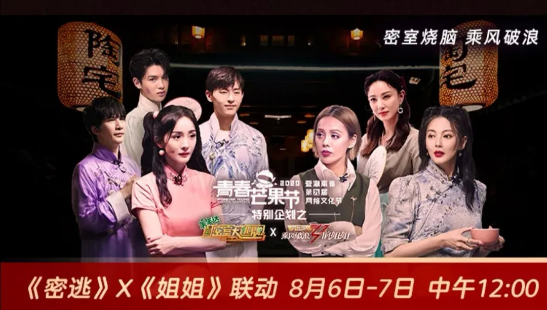 近日,芒果TV的两大IP综艺《乘风破浪的姐姐》和《密室大逃脱2》展开了一场跨节目联动,并且作为2020年青春芒果节的特别企划,这两期节目即将以番外篇的形式在芒果TV开启超前点播。