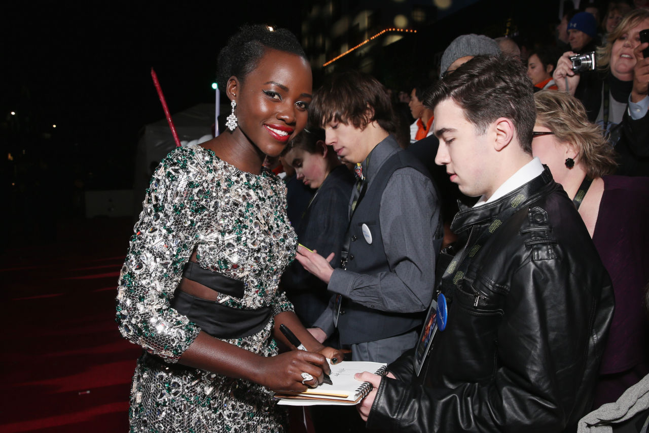 露皮塔·尼永奥正在为粉丝签名
