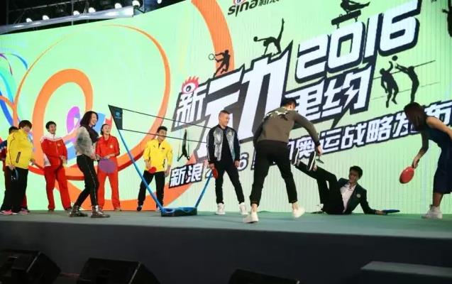 在新浪的发布仪式上,雷声、廖辉等奥运冠军出现在嘉宾席上,郁可唯、聂远、李玉刚等娱乐明星也来站台。发布会的尾声,文体明星被分成两组,来了一场羽毛球大战,不同的是,明星们手里拿的并不是羽毛球拍,而是平底锅、锅铲、乒乓球拍这样的奇葩道具。或许新浪想告诉大家的是:奥运会,就是个大party,玩嗨了就好。