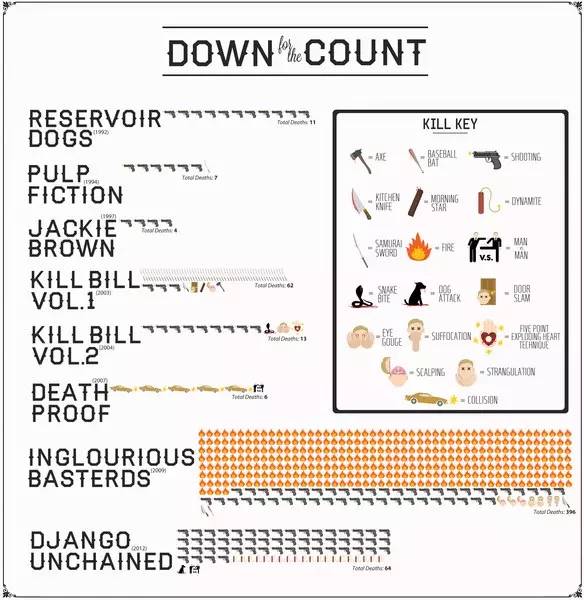 除了昆汀,没有人能在八部电影杀死560个人。我只能说,爽。
