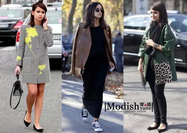 2 小个子姑娘总认为穿平底鞋会被淹没,然而Duma却通过利用与其它的显高法则叠加来进行化解(比如mini裙长和maxi长裙以及一码黑)。