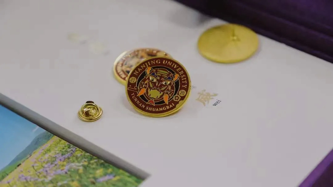 一枚虎头徽章,结合了浓郁的民族色彩与南京大学的元素,有着“如虎添翼”的寓意;