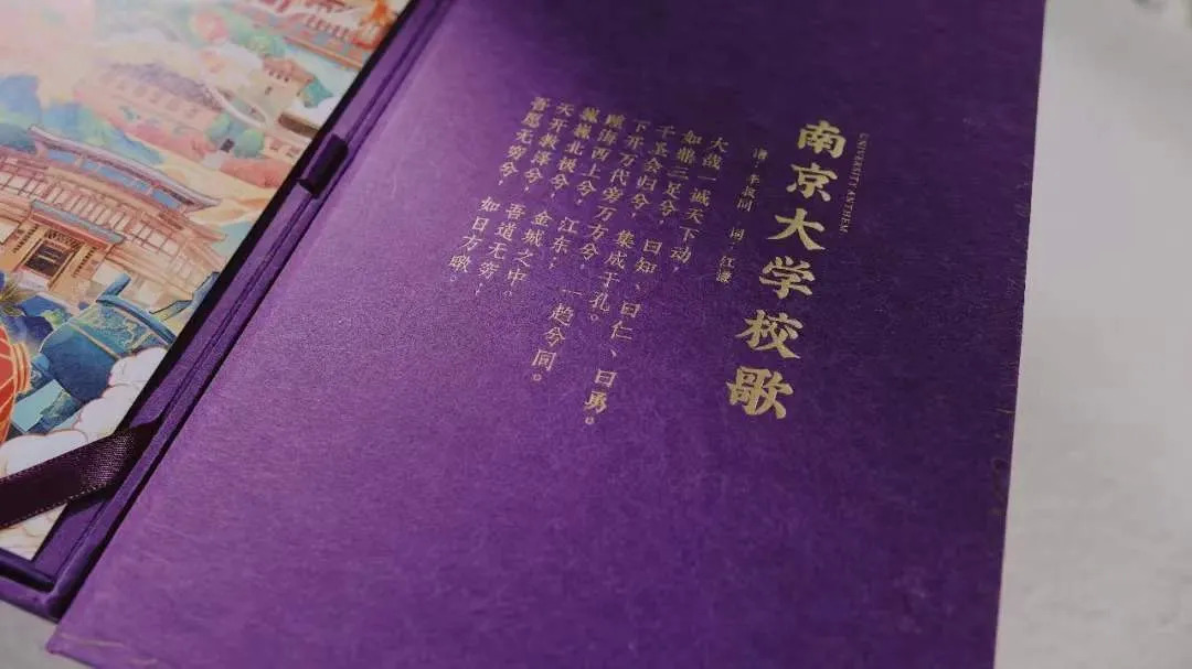 至于礼盒的右侧,则是南京大学校歌。