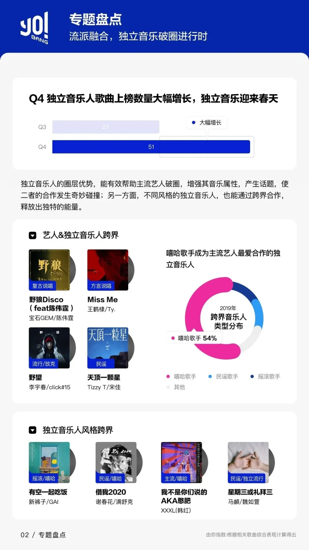 纵观由你音乐榜及由你音乐研究院的《华语数字音乐行业报告》,这并不是其第一次在季度报告中追踪独立音乐及音乐人的发展动态,2019年Q4的季报就曾将视角对准独立音乐人的表现。