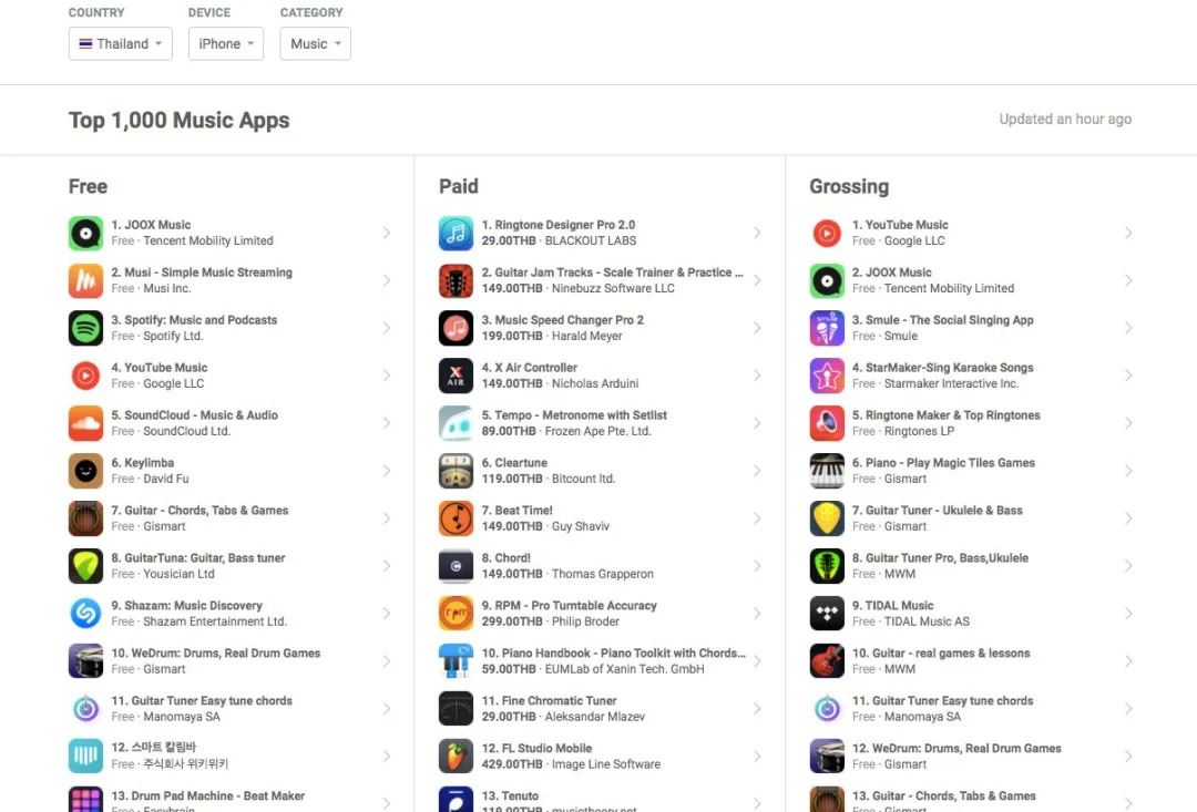 纵观东南亚地区在线音乐平台的发展,并非是一家独大:有本土诞生的Fungjai(泰国)、Zing MP3(越南),以及Spotify、Tidal、Google Play Music、YouTube Music、Amazon、Apple Music、Pandora、Shazam、JOOX、KKBOX等多种音乐类应用。