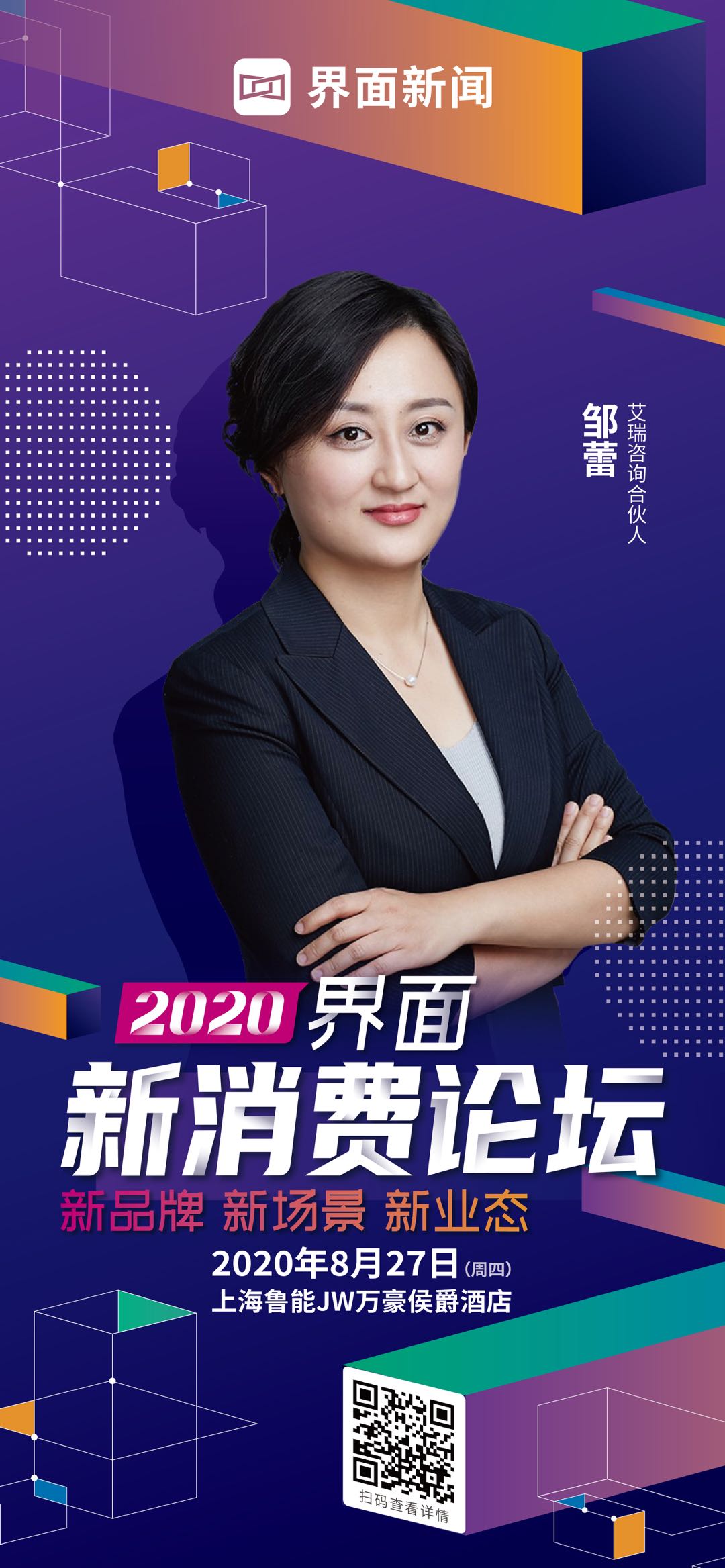 艾瑞咨询合伙人邹蕾将出席8月27日由上海报业集团l界面新闻主办的【2020界面新消费论坛】并发表主题演讲。据悉,本届论坛将于上海鲁能JW万豪伯爵酒店举行,观众将通过各大媒体直播平台观看论坛精彩内容(直播通道将于8月正式开通)。