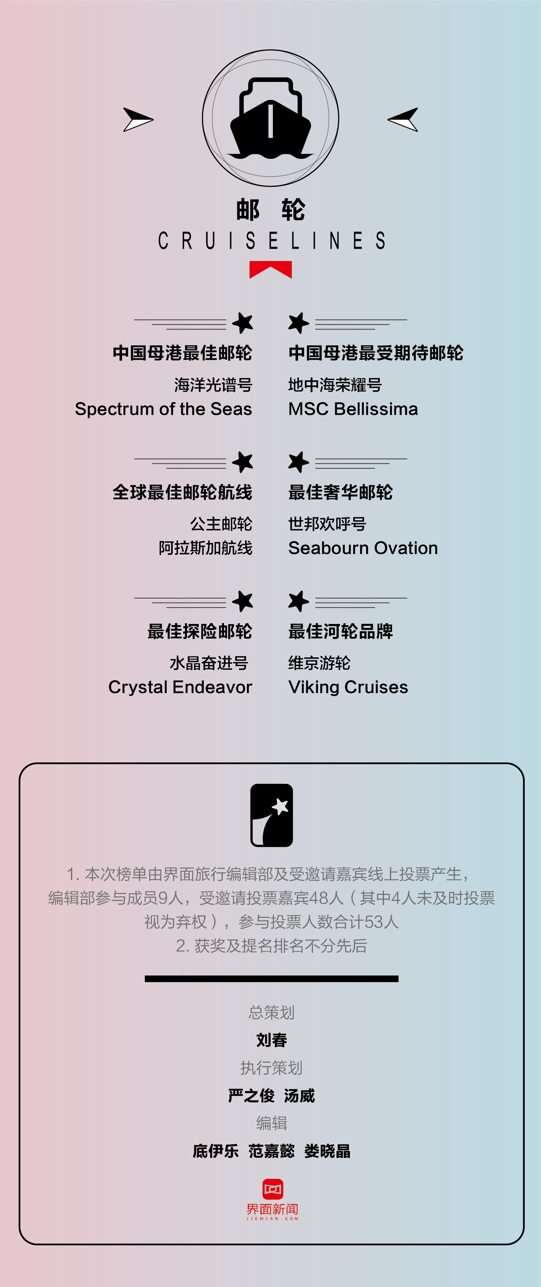 今年我们邀请评委进行线上投票评审。评委由行业专家及商业精英组成。他们作为最先锋的体验者,同时也悉知城市中产对于生活旅行的需求品位以及向往。相信他们的意见会成为整个中国旅游市场的指南针。