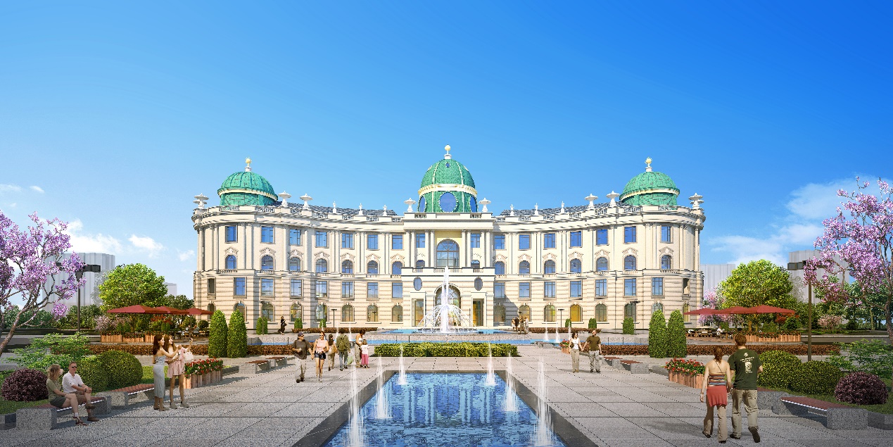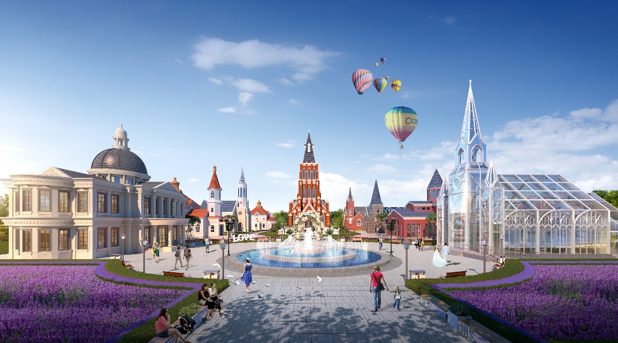 1)有约15000㎡商业大街,约20700 m²全能运动中心,以及约11700 m²欧式城堡酒店。