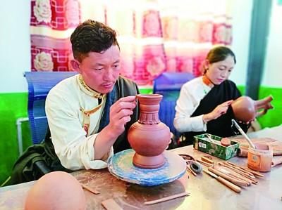 “我们中心有20多人,现在成熟技工月薪在4000元以上。”才角仁增是玉树州囊谦县吉曲乡山荣村古陶器传承工程中心负责人,也是囊谦黑陶制作的后起之秀,2017年,他成立了“山荣村古陶器传承工程中心”,并搬到县里的扶贫产业园区。