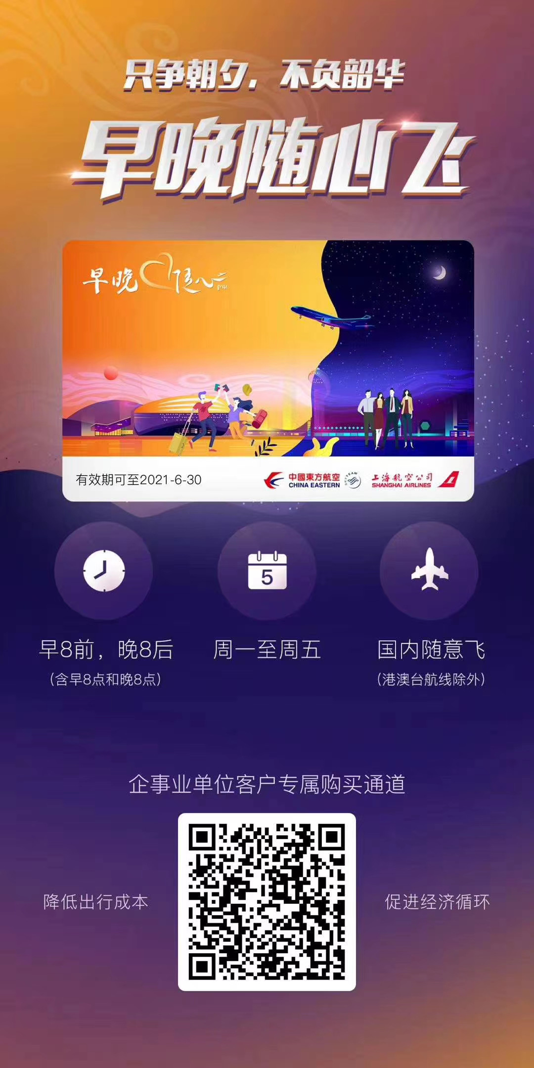 东航方面称,“早晚随心飞”是中国东方航空为降低旅客出行成本,促进社会经济循环的一款航空旅行套票产品,主要为了助力复工复产。首批“早晚随心飞”以定向邀请方式引导企事业单位购买,且适用航班日期为周一至周五工作日,就是为了方便商旅客出差办公。