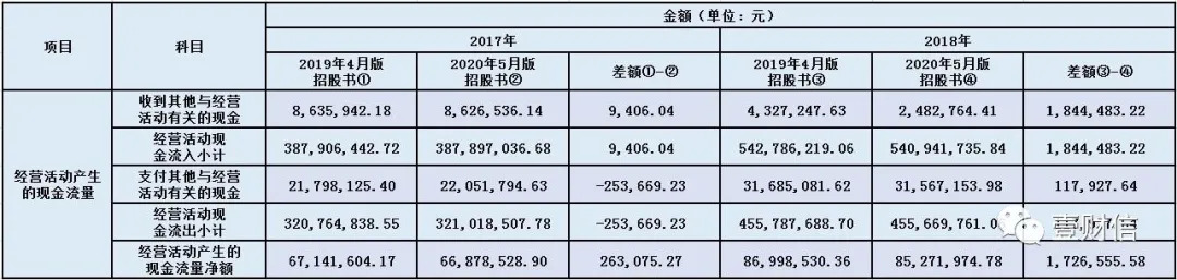2019年4月28日,大宏立向证监会报送了第一版招股书;时隔13个月后,又向证监会报送第二版招股书。两版招股书中2017年和2018年的数据多处出现调整,涉及合并资产负债表、合并利润表、现金流量表等多个方面,具体数据调整如下: