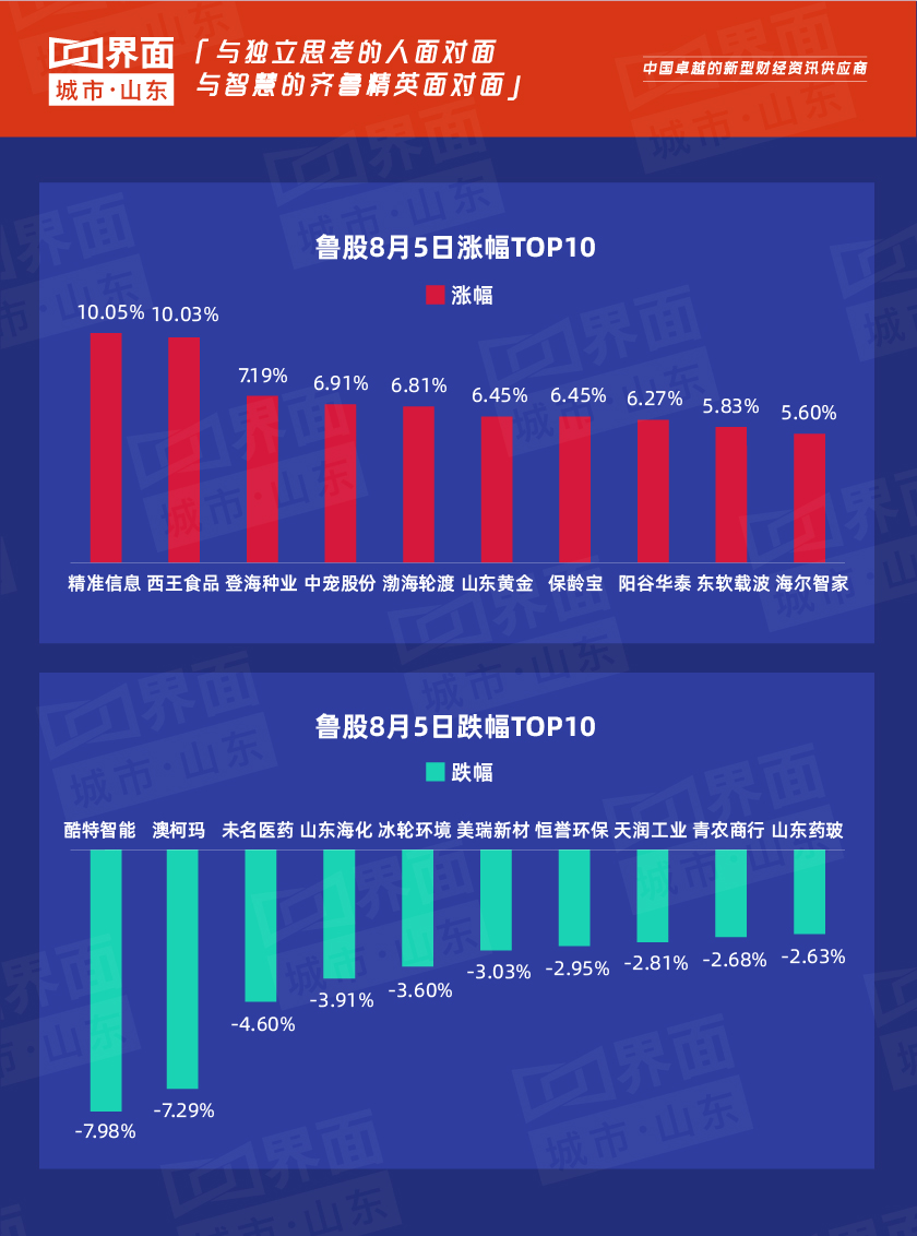 今日鲁股总结:8月5日,山东省内沪深股票有142只个股上涨,68只下跌,9只与上一个交易日收盘价持平。