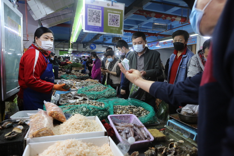 距离大连湾仅10公里的新长兴,是大连最大的室内海鲜批发市场,以往这里的营业时间长达18小时,如今以缩短到7小时。大规模核酸检测后,这里的生意仍然没有恢复以往。