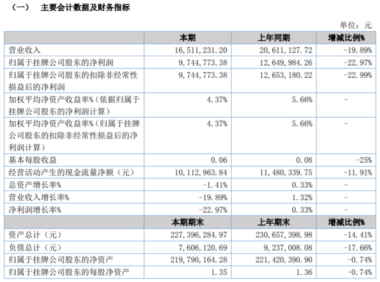 财务数据显示,信源小贷上半年营业收入1654.12万元,同比降19.89%;净利润974.48万元,同比降22.97%;扣非净利润974.48万元,同比降22.99%。财报提及,净利润下降主要原因是受新冠疫情影响,企业贷款余额下降,业务开展缓慢,导致主营业务收入中利息收入同比减少 22.74%。数据显示,上半年信源小贷利息收入为1630.36万元。